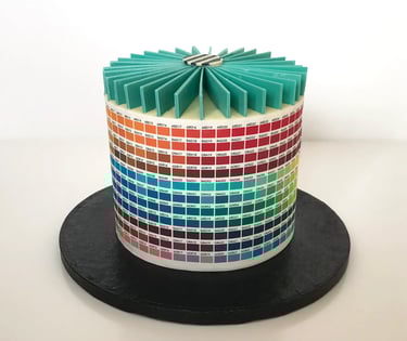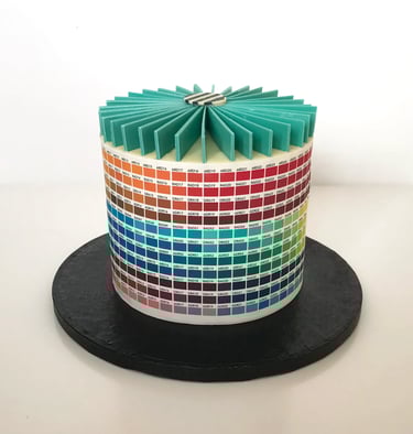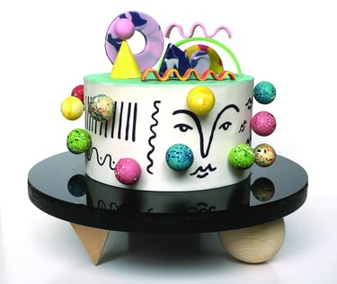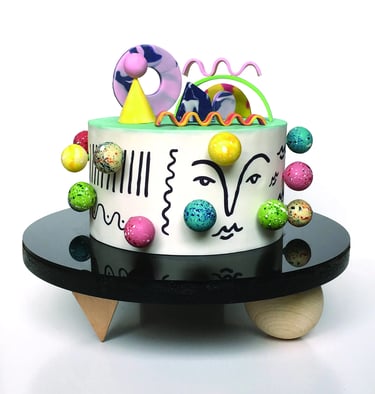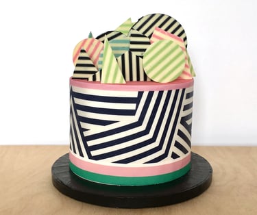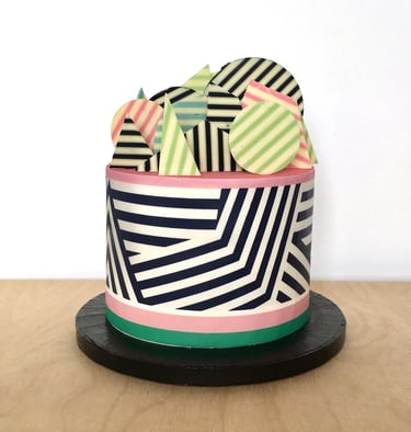 Beyond the technical process, creative expression and aesthetic considerations are equally important. Alison Dunlop, whose background is in fashion and sculpture, demonstrates this beautifully. Her work represents a striking understanding of space, layout, and color theory: “Inspired by architecture, textiles, print and sculpture, her creations are skilfully decorated with bold graphic prints and hand-painted patterns, towering layers of cool upon cool” (Barba-Court). Her designs show how principles of design can translate across mediums — whether on a canvas, a cake, or a digital layout.