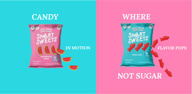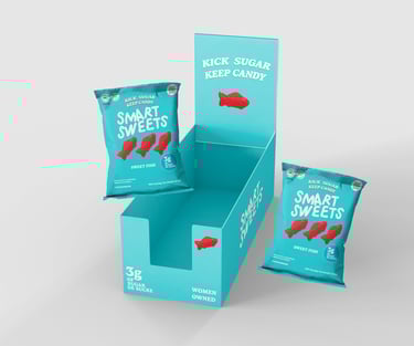 I conducted a competitive analysis of SmartSweets, Kiss My Keto, and Better Bears, focusing on low-sugar candy brands with similar color palettes and target audiences. While SmartSweets has strong shelf appeal, I found opportunities to improve clarity and hierarchy.